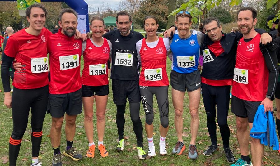 Über die 3000m Cross Distanz in Essen-Überruhr gab es heute, bei trockenem Wetter, drei Titel und drei Vizetitel und obendrein den Mannschaftstitel für unsere Masters Männer.1. M35 Daniel Buß 0:08:56 1. M40 Niels Faassen 0:09:13 2. M45 Jens Krause 0:11:22 2. M50 Gian Luca Madeddu 0:10:54 1. W50 Silke Niehues 0:11:25 2. W55 Corinna Mertens 0:12:12 1. LG Wuppertal 1 (Buß - Faassen - Madeddu) 9 PunkteAusserdem schon mit dabei unser beiden Neuzugänge Alexander und David, die aber erst am 01.01.2026 für die LG Wuppertal startberechtigt sind.