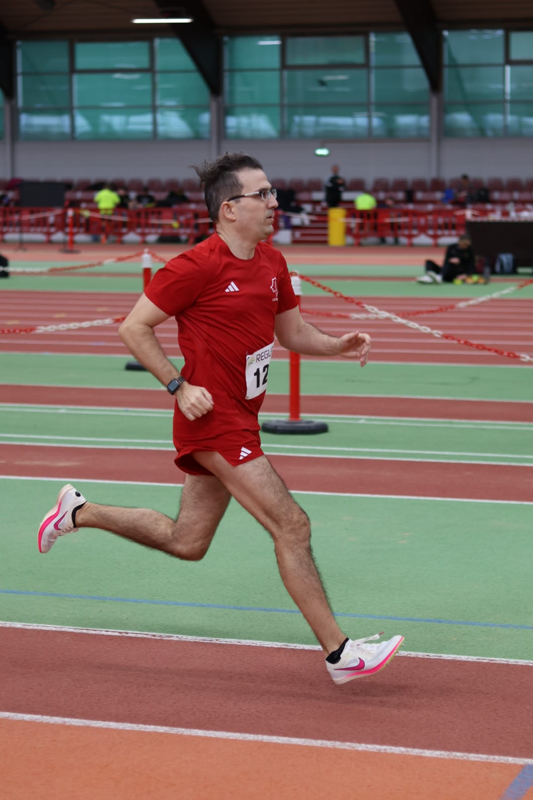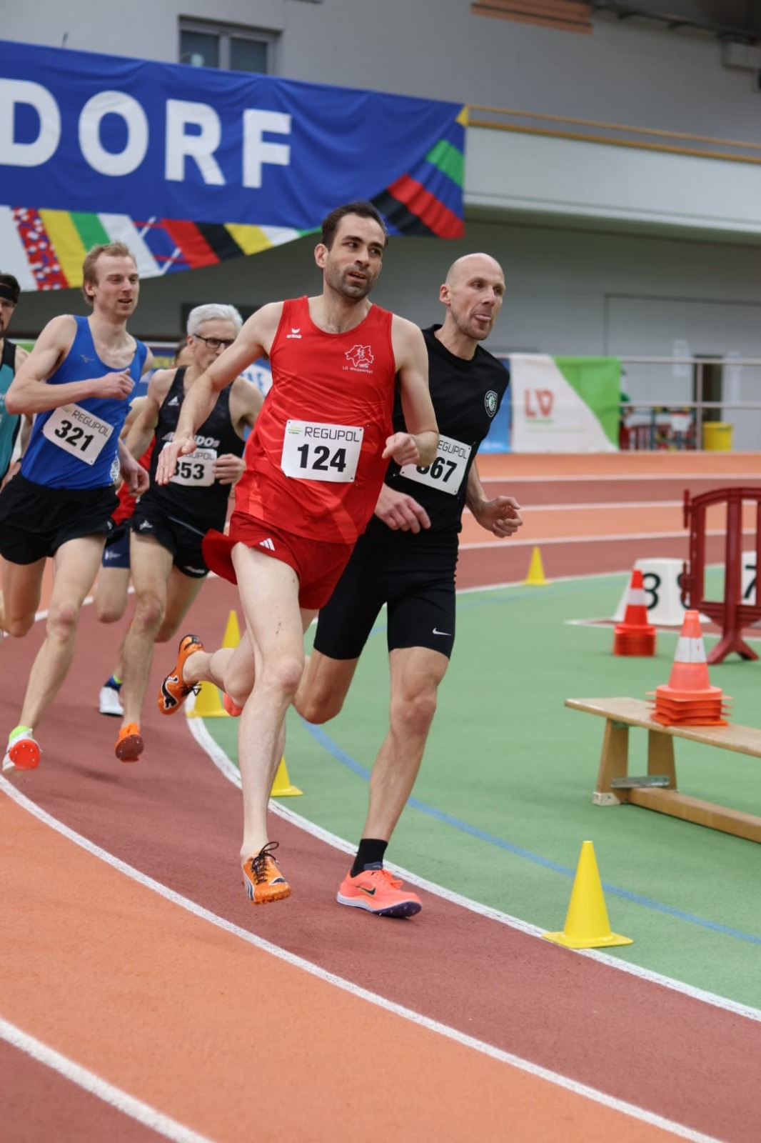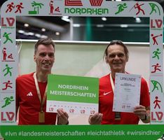 Den Auftakt bildeten die 1.500 Meter. Unsere Athleten präsentierten sich in bestechender Form. In der Altersklasse M45 gewann Ewout Hilferink nicht nur seine Altersklasse, sondern auch den Gesamtlauf mit einer Leistung auf nationalem top Niveau. Mit neuem Hallen-Vereinsrekord und persönlicher Bestzeit sicherte er sich nach einem taktisch geprägten Rennen souverän den Nordrheinmeistertitel.