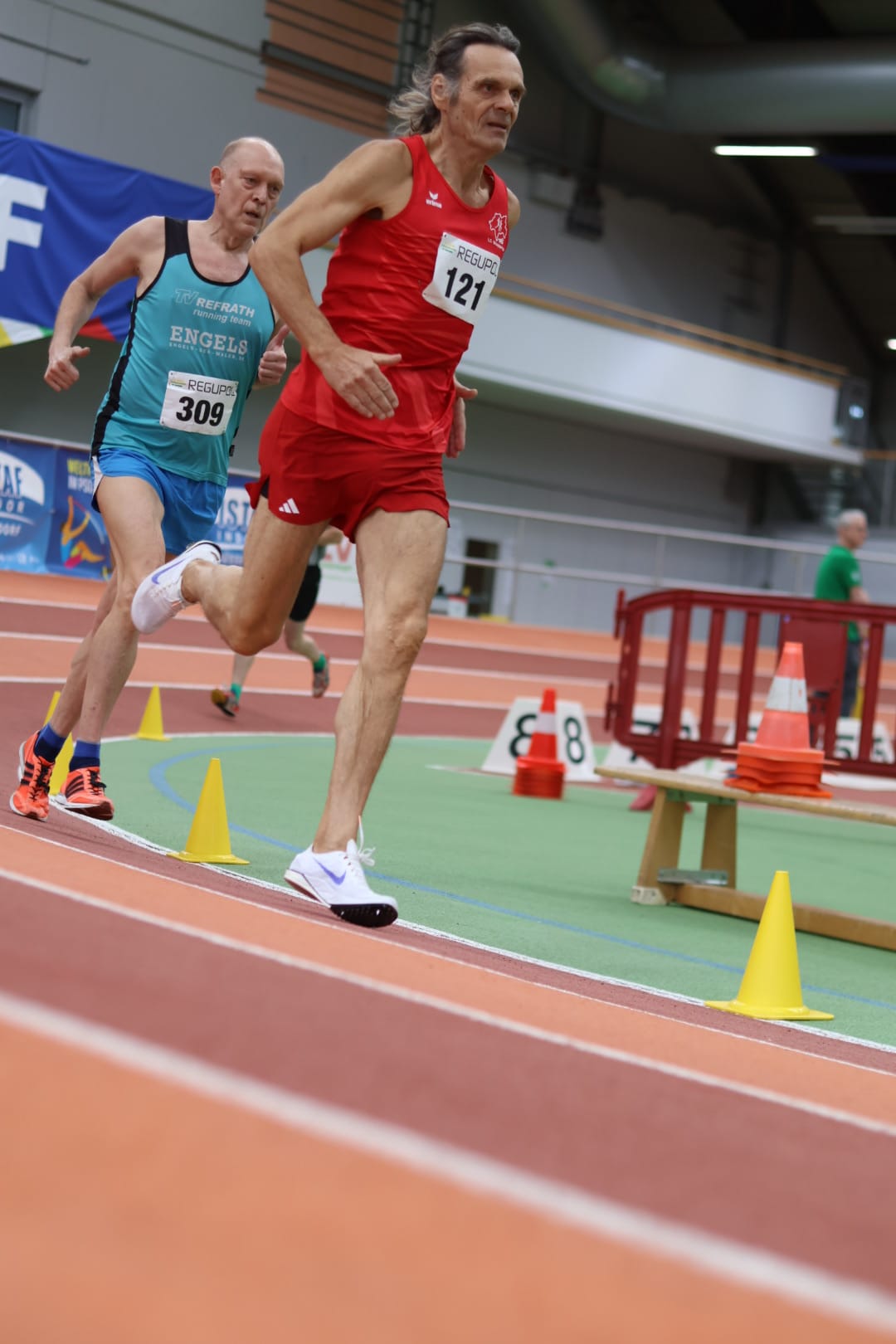 Dennoch konnte er mit einer starken Zeit von 16:10,89 min in der trockenen Hallenluft den zweiten Platz auf die nachfolgenden Geher der Altersklasse M55 sichern und so die Silbermedaille erringen.