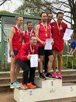 Unser Verein schickte gleich zwei Staffeln, die beide je über 4 x 400 Meter und über 3 x 1000 Meter an den Start gingen. Ein M40- und ein M50-Team.